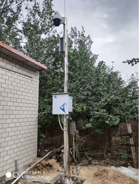施工現場,監控桿高度4.5米,材質為純304不銹鋼,壁厚4mm。